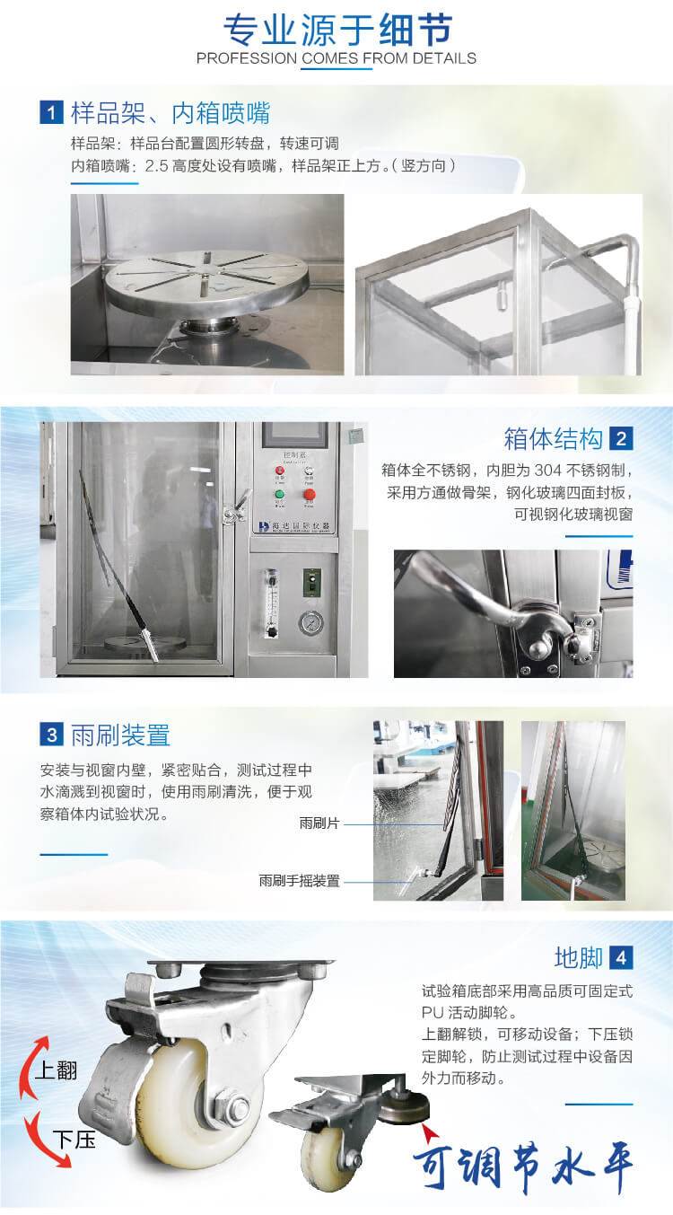 強(qiáng)噴水試驗(yàn)箱IPX5-6適用于測(cè)試產(chǎn)品在淋雨的氣候環(huán)境下的貯存、運(yùn)輸和使用時(shí)的性能試驗(yàn),該設(shè) 備主要用于對(duì)電工電子產(chǎn)品、燈具、電柜、電器元件、汽車(chē)、摩托車(chē)及其零部件等產(chǎn)品 在模擬淋雨的氣候條件下,對(duì)產(chǎn)品的物理以及其它相關(guān)性能進(jìn)行測(cè)試。