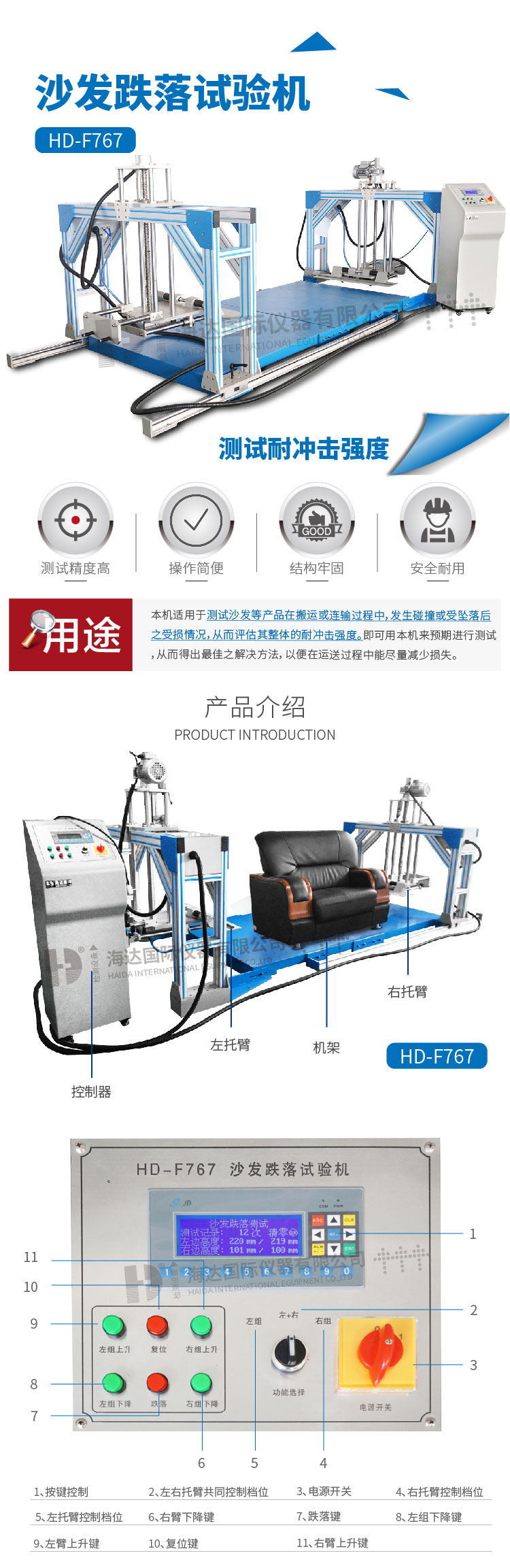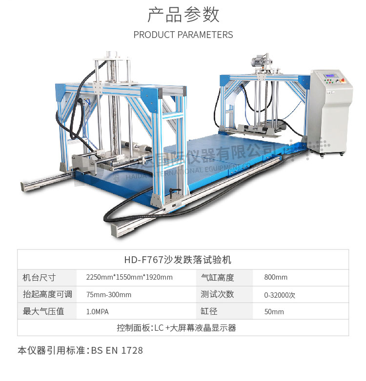 沙發(fā)跌落試驗(yàn)儀評估沙發(fā)跌落后木架是否損壞。